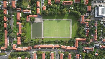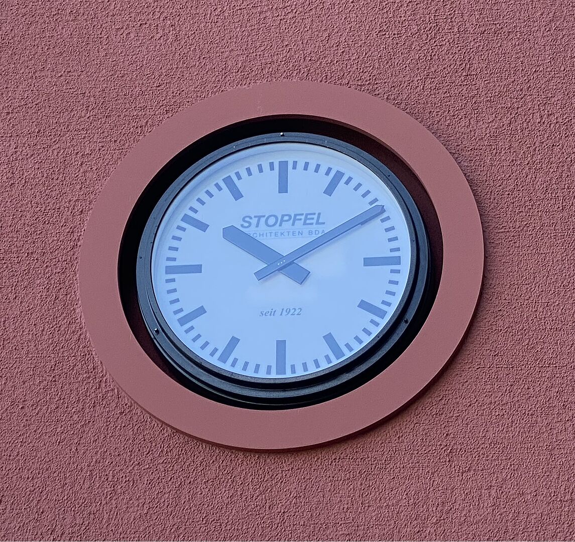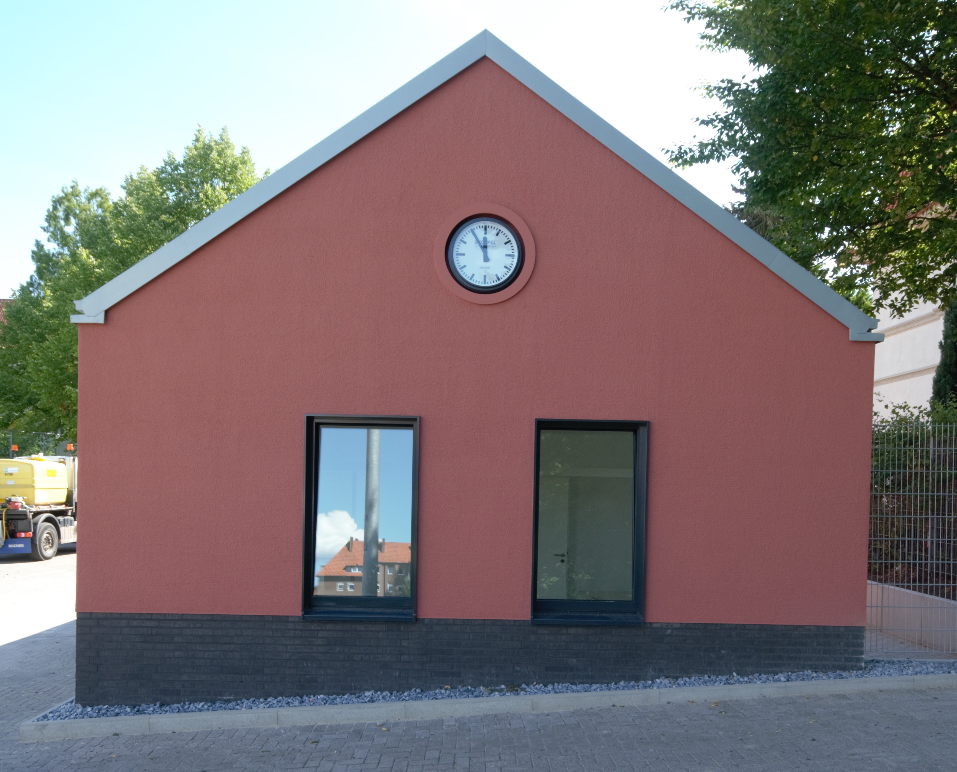 Als kleines I -Tüpfelchen erhält das Gebäude eine vom Fußballplatz gut sichtbare Stadion-Funkuhr im Giebel.