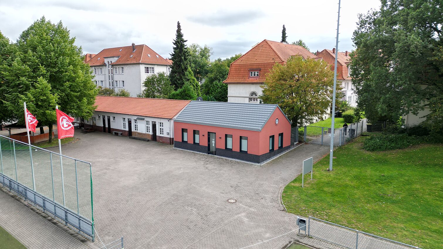 Auf der Sportanlage „Königsbrügge“ ist der Neubau einer Geschäftsstelle für den Verein TuS Eintracht entstanden.