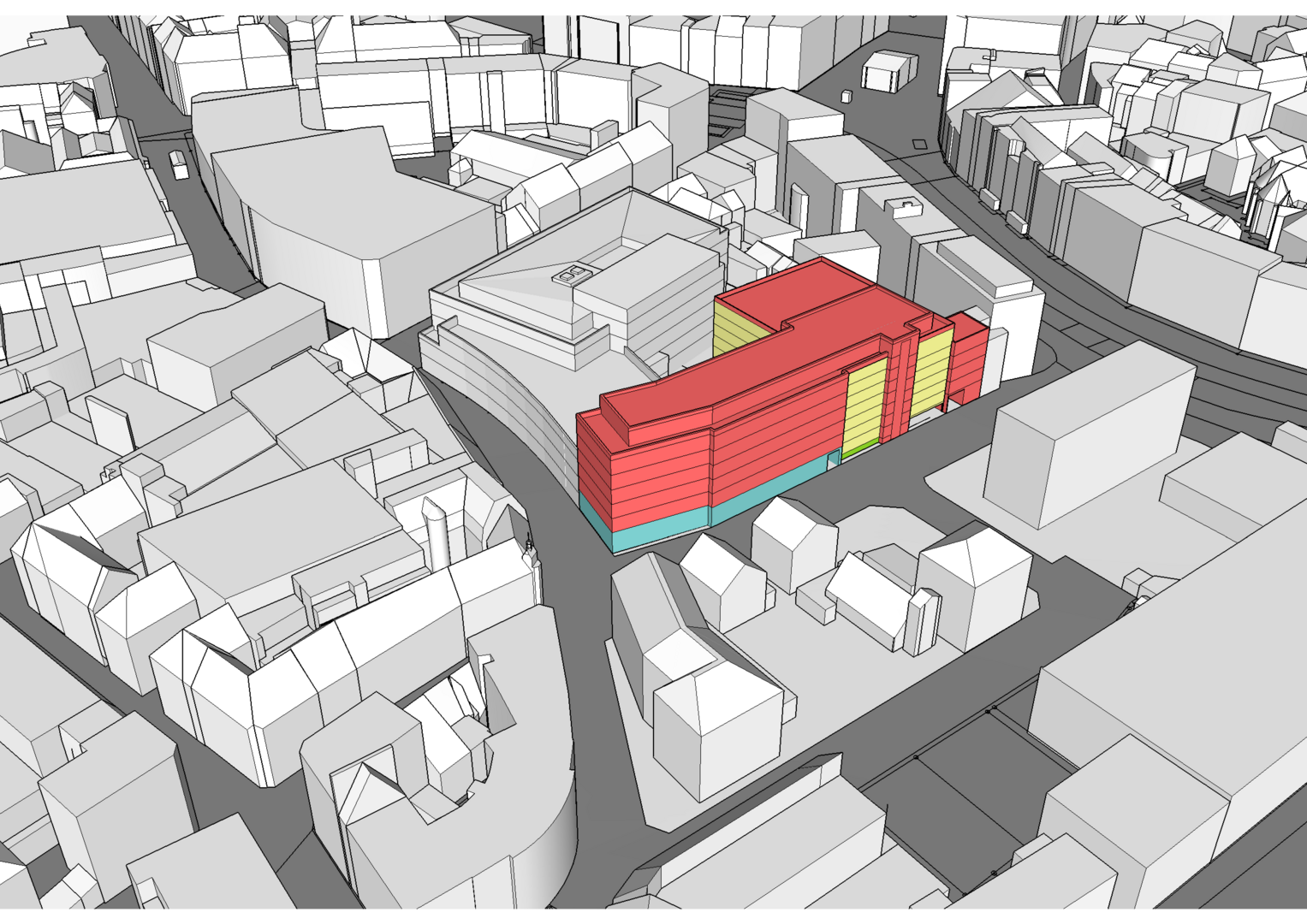 Entwurf von diversen Wohn- und Geschäftshäusern, einem Parkhaus und der Umnutzung des Karstadt Kaufhauses.