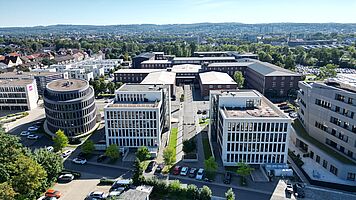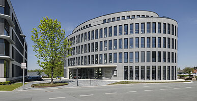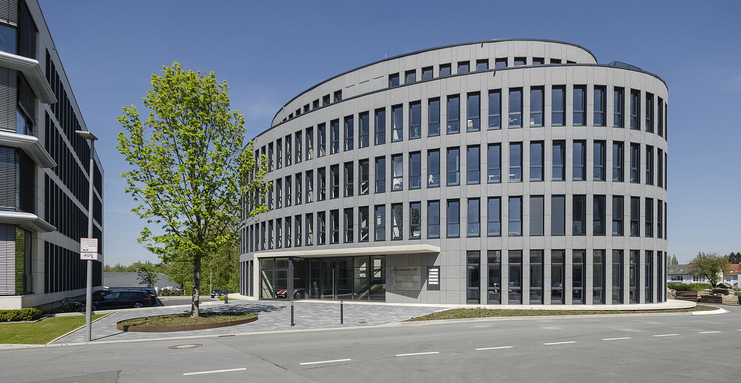 Das Ellipsen-förmige Bürogebäude beinhaltet ca. 2700m² Nutzfläche auf vier Geschosse verteilt. Ein Highlight ist der Eingangsbereich mit einem im Treppenhaus integrierten gläsernen Ausstellungsraum. Die Fertigstellung erfolgte im Sommer 2015.