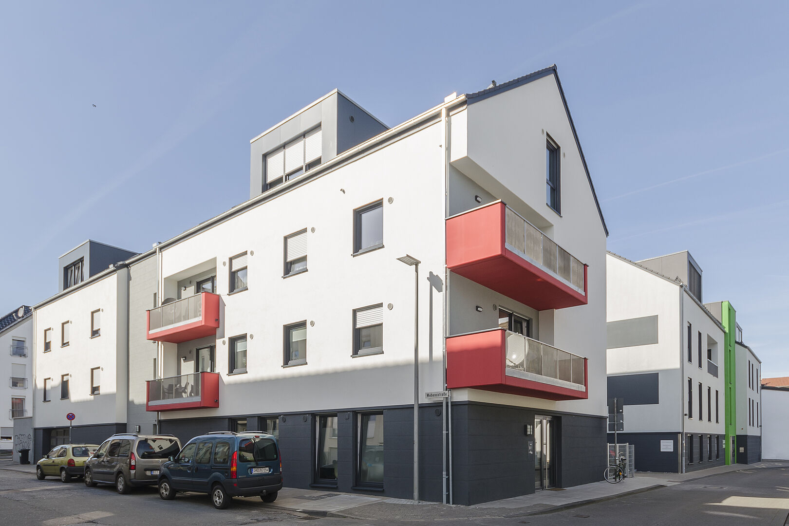 Auf einem engplatzierten Grundstück wurde 2015 nach Abriss zweier Gebäude (Restaurant Tropical) mit dem Bau des Wohnhauses begonnen. Der Parkraum für die 9 Wohneinheiten und der Kinderbetreuung wurde im Erdgeschoss untergebracht. Die barrierefreien Einheiten wurden in konventioneller Bauweise im Auftrag der Leistungsphasen 1-9 HOAI für den Bauträger Hagen Massivbau hergestellt. Die Fertigstellung und Übergabe an die Käufer erfolgte Mitte 2016.