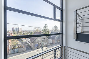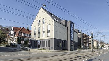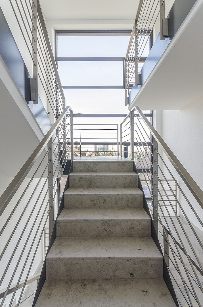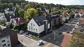 Das Wohn- und Geschäftshaus an der Detmolder Straße 86 in Bielefeld wurde als Vermietungsobjekt mit einer Tiefgarage im Untergeschoss geplant. Der Baubeginn erfolgte 2016. Neun Wohneinheiten, davon drei als Maisonette, wurden im September 2016 bezogen. Die 250 m² große Gewerbefläche, im Erdgeschoss, welches sich optisch vom aufgehenden Gebäude abhebt, ist das neue Zuhause von „Stopfel Architekten BDA“. Die Gebäudeform folgte streng den Vorgaben des Bebauungsplanes. Das großzügige Treppenhaus ermöglicht den Blick über die Bielefelder Stadtsilhouette und erschließt barrierefrei die Detmolder Straße abgewandten Einheiten.