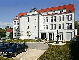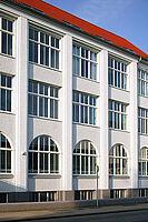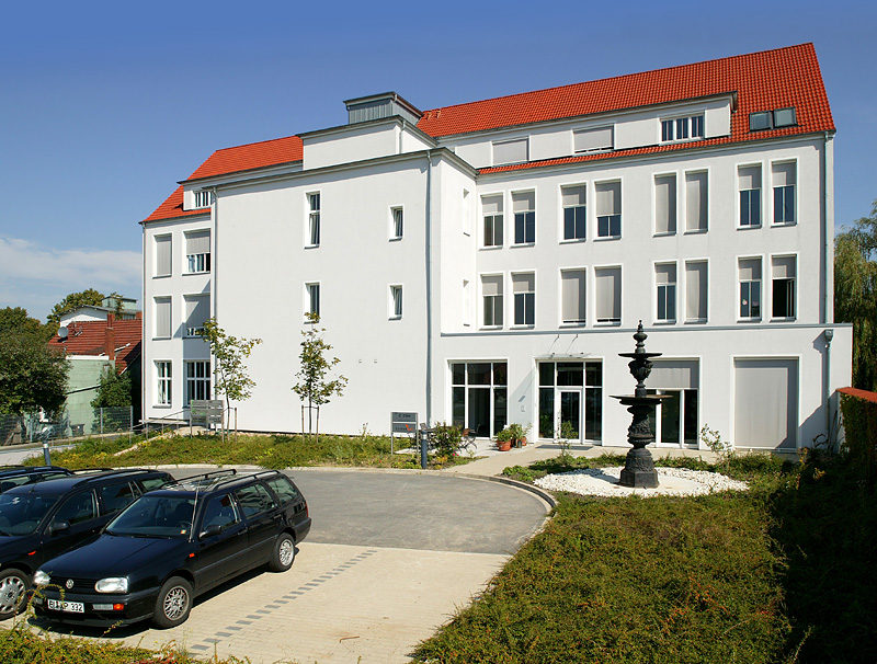 Die Fassadengestaltung folgt dem historischen Vorbild unter Berücksichtigung heutiger Energieanforderungen. Das Grundstück wurde rekultiviert und entsprechend durchgrünt.